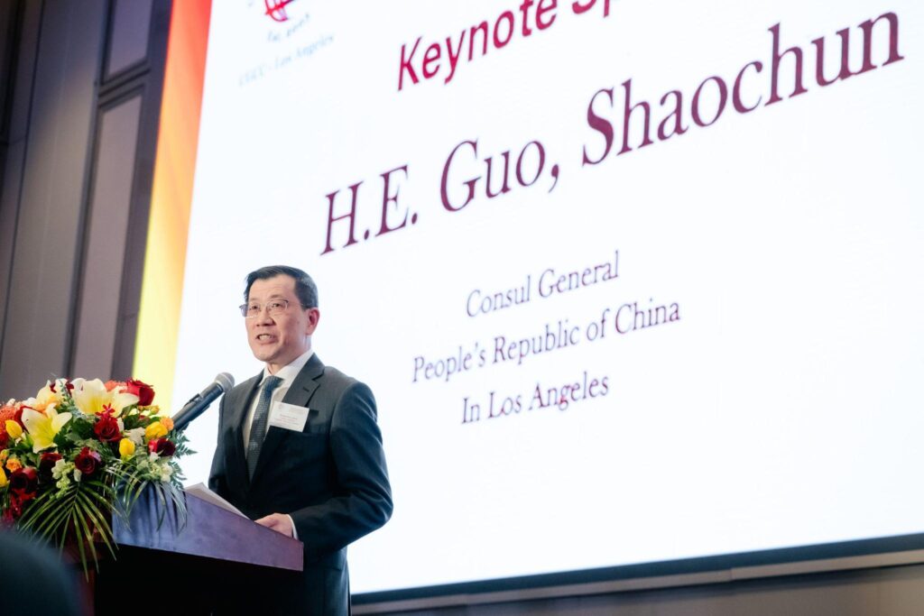 Guo Shaochun, Consul General of the Chinese Consulate in Los Angeles, spoke to the mutual benefits of U.S.-China trade, noting its contributions to job creation, cost efficiency, and consumer purchasing power in the United States.